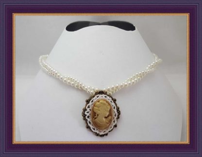Collier Séduction ras de cou, composé de perles nacrée en cristal de bohème et d’un élégant et romantique camée.